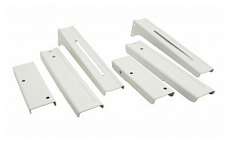 Для изготовления использован металл повышенной прочности на изгиб, а для большей устойчивости ему придали соответствующий изогнутый профиль. Поверхность покрыта белой порошковой краской. Такая обработка гарантирует, что со временем не начнется коррозия и краска не будет отслаиваться во влажном воздухе кухни. Расстояние между установкой стеновых скоб выбирается в соответствии с габаритами печи СВЧ. Крепление на стену шурупами с уплотнениями. И размер настенных скоб равен 15 см в высоту. Закрепленные скобы можно нагружать техникой массой до 40 кг. Длину несущих консолей, закрепленных на скобы, подбираем под размеры печи. Конструкция допускает варианты от 30 см до 42 см.