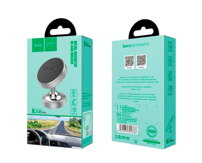 Автомобильный держатель HOCO CA36 - держатель телефона алюминиевый магнитный для приборной панели. Для всех мобильных телефонов с магнитной пластиной. Размер: диаметр 34мм, высота 50мм. Вес – 46г.