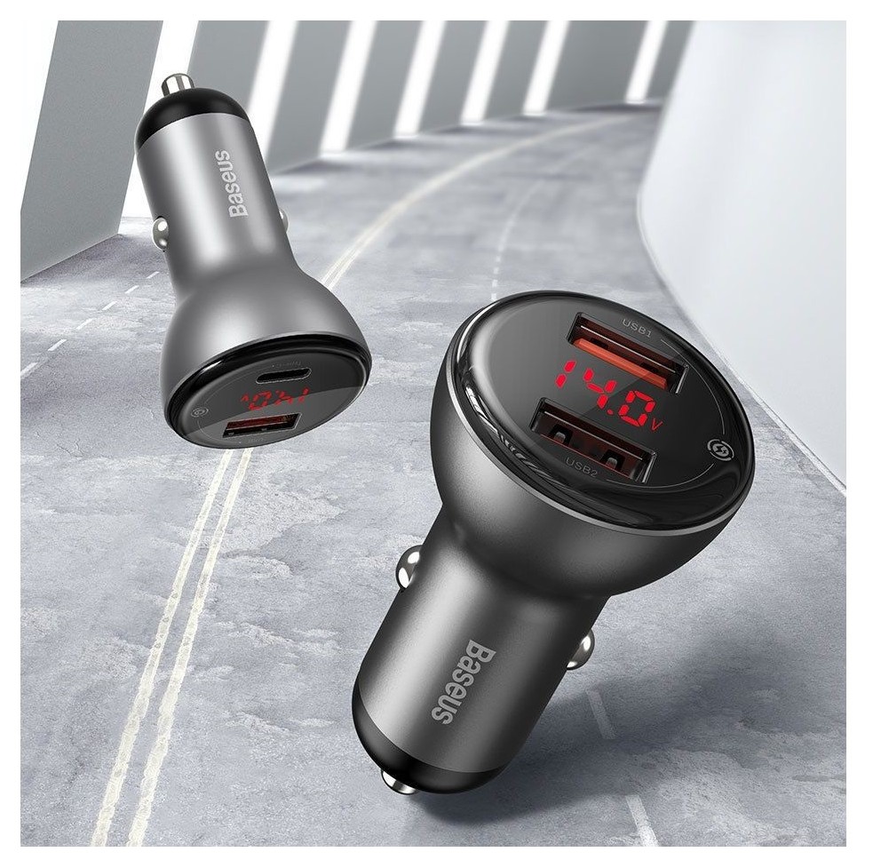 Автомобильное з/у Baseus Digital Display Dual PPS QC 45W Gray