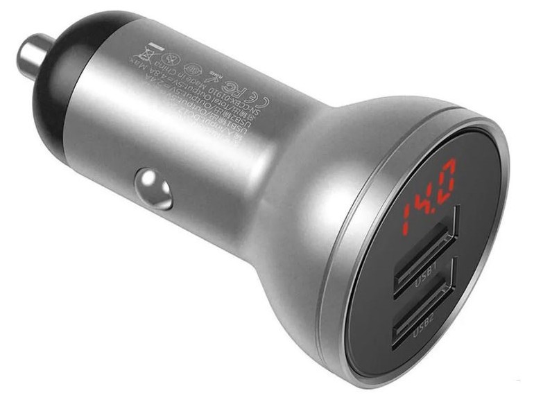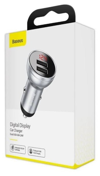 Автомобильное з/у Baseus Digital Display Dual USB 4.8A 24W Silver – автомобильное зарядное устройство, которое позволяет зарядить смартфон в машине. Вставляется в прикуриватель. Устройство совместимо со всеми известными торговыми марками смартфонов.