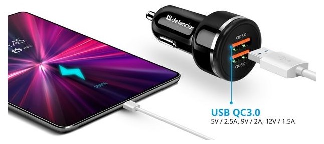 Автомобильное з/у DEFENDER UCA-80 2xUSB QC3.0