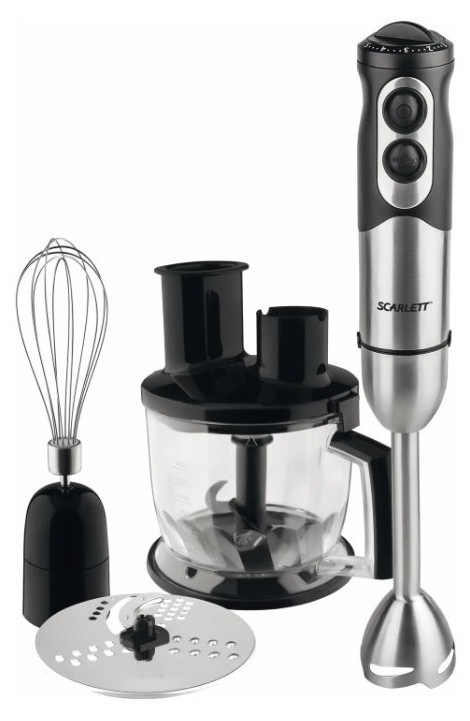 Блендер обладает функцией колки льда, значительно упрощающей приготовление напитков. Scarlett SC-HB42K01 открывает широкие возможности для приготовления блюд, так как в комплект поставки входят: двусторонний диск для терки из шинковки из нержавеющей стали, венчик для взбивания, измельчитель (1700 мл) и мерный стакан (600 мл).