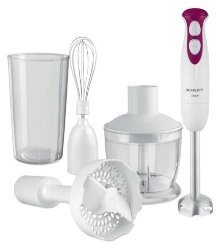 Блендер Scarlett SC-HB42M41 мощностью 750 Вт выполнен в черно-фиолетовой расцветке. За счет своего функционала и производительности модель станет полезной на кухне каждого человека, который любит готовить. Измельчитель, блендер и венчик позволяют взбивать, смешивать и измельчать всевозможные ингредиенты самых сложносочиненных блюд. Прибор имеет 2 скорости работы, а его погружная часть выполнена из металла. Для форсированной работы в функционале предусмотрен турборежим. Длина кабеля блендера Scarlett SC-HB42M41 составляет 1.1 м. Для компактного хранения в конструкции модели предусмотрено специальное настенное крепление. Для удобства удержания в ладони пластиковый корпус модели дополнен прорезиненным покрытием в области рукоятки.