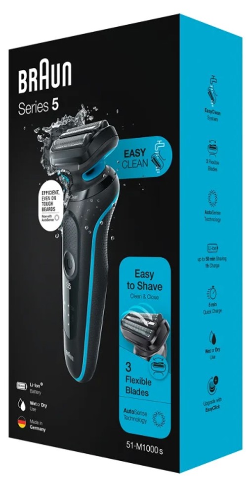 Электробритва Braun S5 51-M1000s выполнена в водонепроницаемом корпусе, поэтому подходит для влажного бритья в душе и предусматривает очистку под струей воды. Благодаря интеллектуальной технологии AutoSense она определяет плотность щетины и адаптируется для тщательного сбривания волос. Система бритвенной головки MicroComb захватывает волоски и направляет их к лезвиям, что обеспечивает гладкость кожи и отсутствие раздражения.