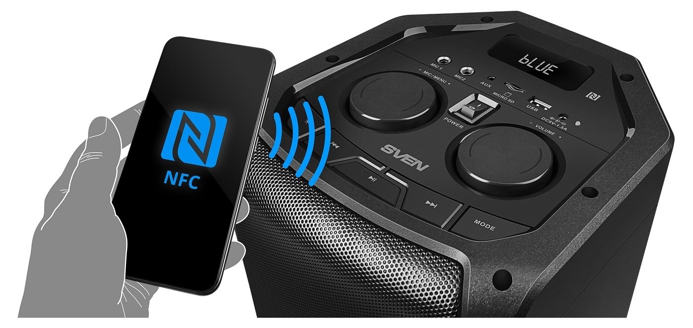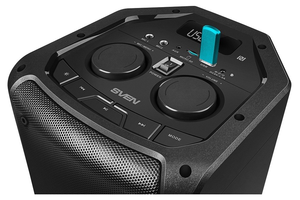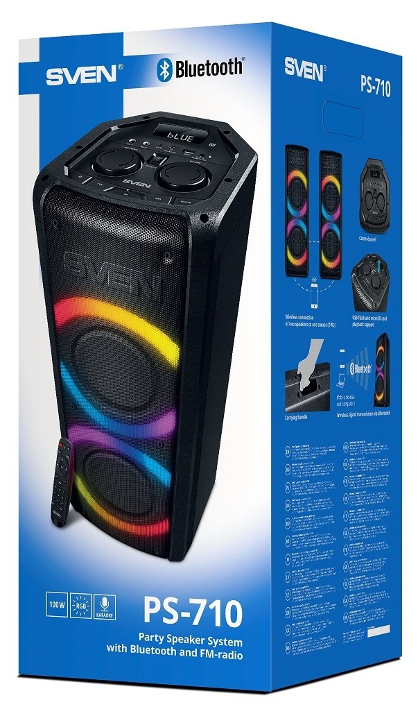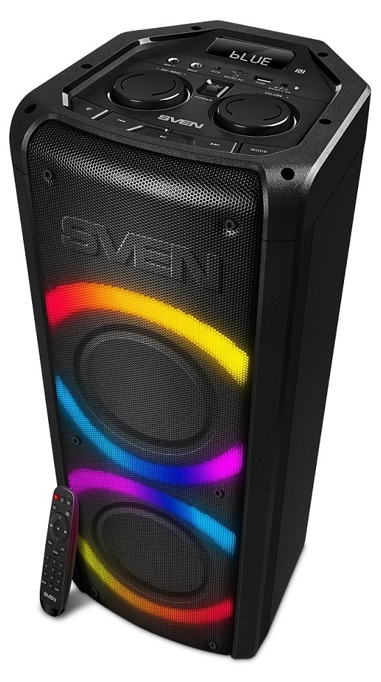 Отключаемая динамическая RGB-подсветка с несколькими варианитами свечения прекрасно дополняет насыщенное звуковое сопровождение. Передача звука через Bluetooth обеспечит удобное и устойчивое подключение к гаджету-источнику сигнала без проводов на значительном расстоянии. Два микрофонных входа позволяют спеть любимые песни дуэтом со своими друзьями и близкими. Яркий и контрастный LED-дисплей позволит легко контролировать различные параметры работы устройства. Регулировать громкость и изменять множество различных настроек акустической системы можно с помощью удобного пульта дистанционного управления.