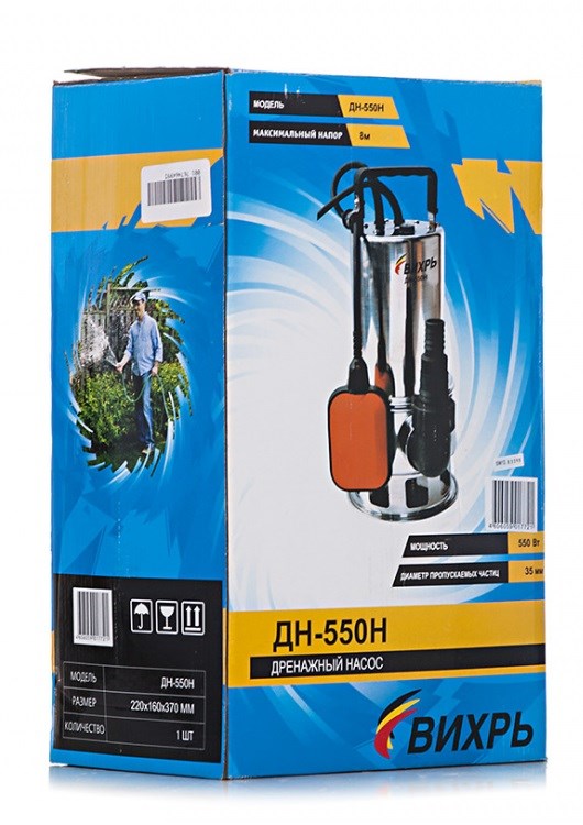 Дренажный насос Вихрь ДН-550Н предназначен для перекачивания и отведения чистых, дренажных, дождевых и грунтовых вод. Допускается средний уровень загрязненности воды, наибольший размер твёрдых частиц не должен превышать 35 мм. Так же насос можно использовать для подачи воды из открытых водоемов, колодцев и других источников. Изделие оснащено поплавковым выключателем, что позволяет насосу самостоятельно включаться по мере поступления воды и отключаться после ее перекачивания.