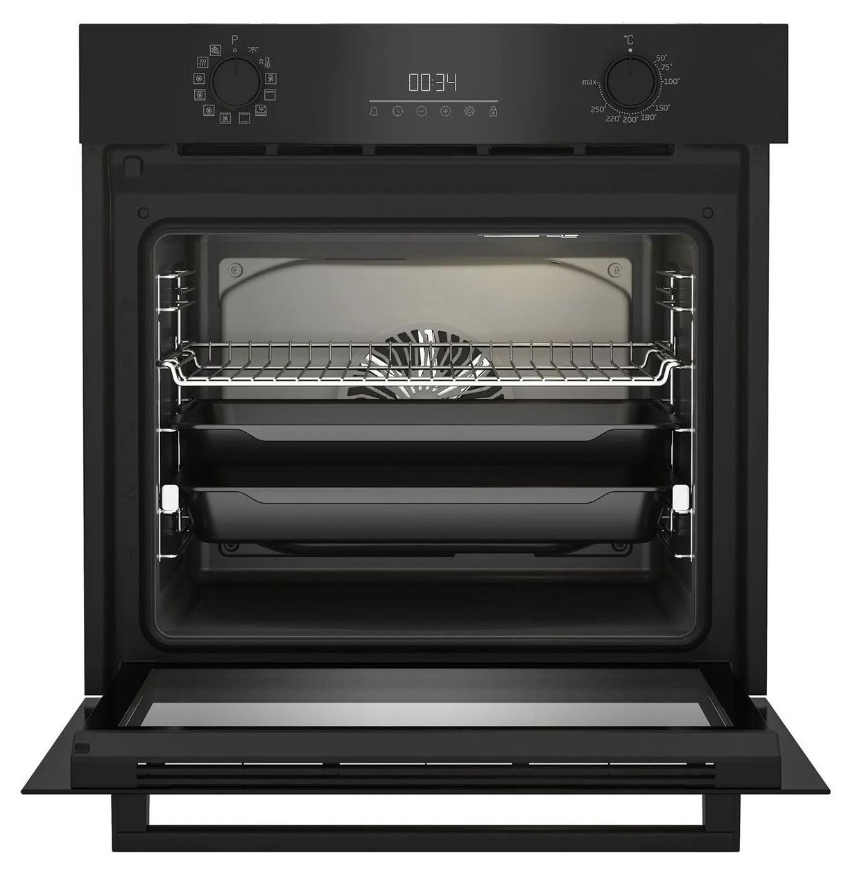 Безопасность использования обеспечивается блокировкой от случайного нажатия и двумя стеклами дверцы духовки.