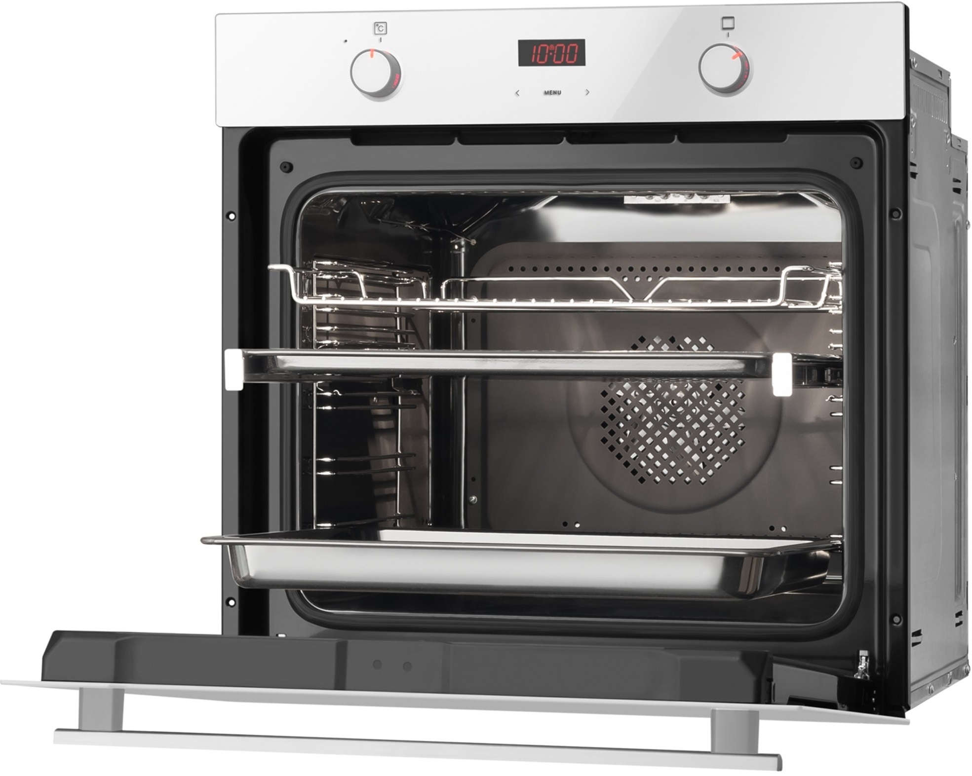 Белый духовой шкаф Hansa BOEW 684097 создан специально для тех, кто любит функциональность, европейское качество и простоту в управлении. Широкий диапазон температуры, XXL объем духовки и XXL противни, равномерное распределение тепла BakingPro System, цифровой таймер, который задаст общее время приготовления и время выключения духового шкафа все, что нужно, для быстрого и приятного приготовления самых разнообразных блюд. Новая форма решетки с дополнительными отверстиями сверху и снизу позволяют достигнуть более объёмного распределения тепла внутри камеры духового шкафа. Если противень тяжелый и горячий, то доставая его из духовки вы рискуете уронить его или обжечься. Однако, с телескопическими направляющими в духовке этого не случится. Они поддерживают противень и все, что вам надо сделать — это выдвинуть его, легко потянув на себя. Кроме того, вы можете сами выбрать уровень, на котором вам нужны направляющие, и легко перевесить их.
