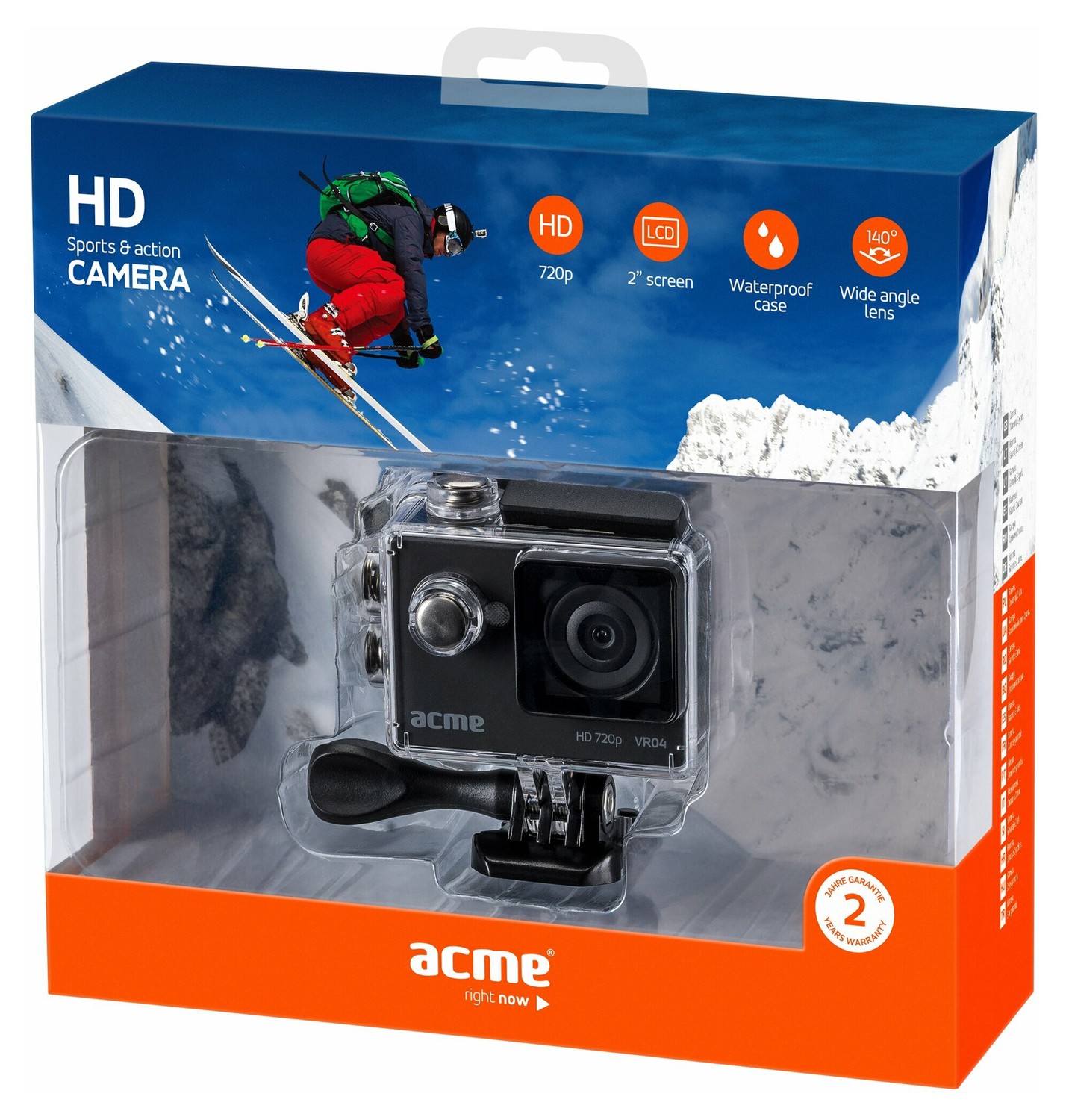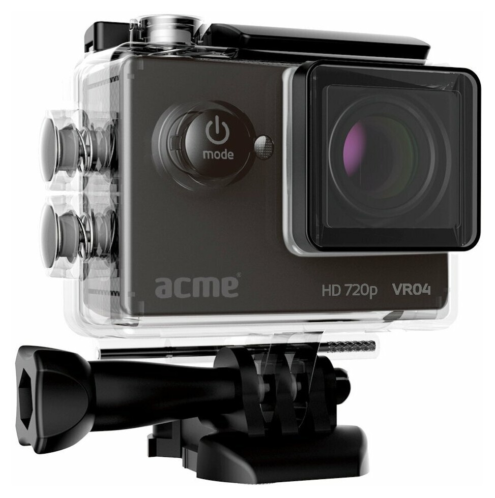 Компактная экшн-камера для активного спорта ACME VR04 Compact HD sports & action camera. Никогда еще не было так просто увековечить лучшие мгновения своей жизни. С этой камерой вы сделаете это легко и особенно качественно, так как она отличается исключительно высоким разрешением. Интегрированный 2-дюймовый экран позволит вам с удобством сразу же просмотреть видеозаписи, пока эмоции еще не улетучились. Кроме того, вместе с камерой вы получите водонепроницаемый футляр, который поможет зафиксировать захватывающие дух виды даже на глубине 30 м, а также другие аксессуары.