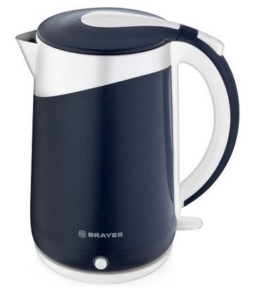 BRAYER BR1060 защищен от включения без воды. Фильтр отлично избавляет от накипи, что делает очистку чайника простой и быстрой. Корпус устройства изготовлен из гигиеничной и безопасной нержавеющей стали. Предусмотрена возможность вращения на 360 градусов. Чайник достаточно экономен, его максимальная потребляемая мощность составляет 2200 Вт. Устройство весит всего 1,6 кг. Модель выполнена в сочетании синего и белого цветов.