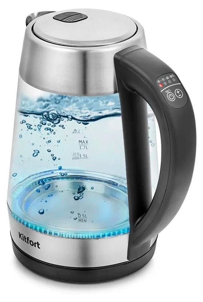 Электрочайник Kitfort KT-6107 воплощает стильный дизайн, расширенную функциональность и удобство в пользовании. Он выполнен в корпусе из комбинации прозрачного закаленного стекла, металла и пластика. Встроенный терморегулятор позволяет простым нажатием кнопок на рукоятке устанавливать подходящую температуру нагрева воды в пределах 40-100 °С. Также в чайнике реализована технология поддержания температуры в течение 2 часов.