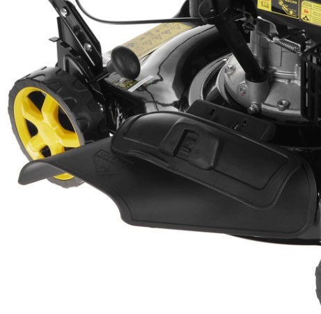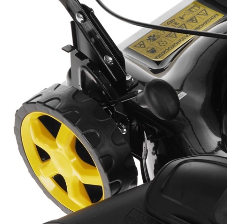 На рукоятке расположены рычаги управления. Ее высоту можно регулировать в зависимости от потребностей, а складная конструкция повышает удобство хранения газонокосилки. Четыре пластиковых колеса обеспечивают простое перемещение на ровных или бугристых поверхностях. Технология защиты от перегрузок повышает надежность в эксплуатации Huter GLM-4.0 G.