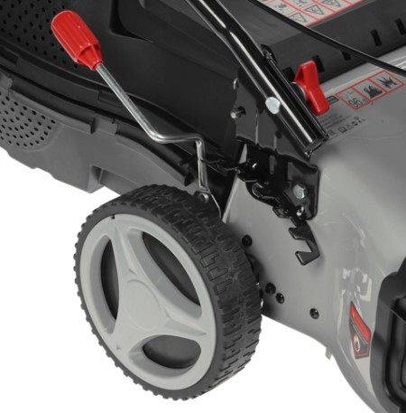 Сбалансированные характеристики мощности двигателя и ширины кошения ускоряют процесс обработки и снижают нагрузку, чем увеличивают ресурс изделия. Широкий диапазон и многоступенчатая центральная регулировка высоты кошения расширяют возможности применения газонокосилки. Легкосъемный травосборник большого объема не требует частого опустошения.