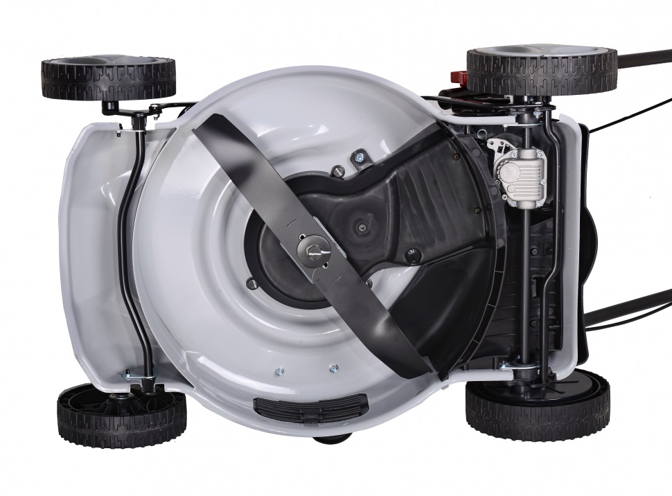 Сбалансированные характеристики мощности двигателя и ширины кошения ускоряют процесс обработки и снижают нагрузку, чем увеличивают ресурс изделия. Широкий диапазон и многоступенчатая центральная регулировка высоты кошения расширяют возможности применения газонокосилки. Легкосъемный травосборник большого объема не требует частого опустошения.