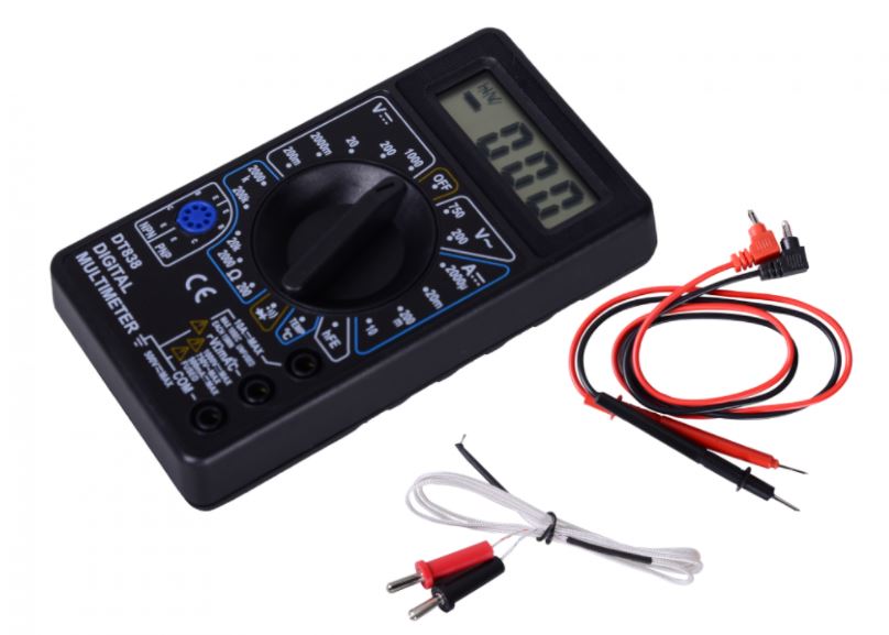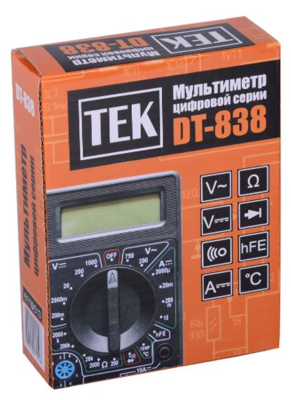 Мультиметр DT 838 - это цифровой многофункциональный измерительный прибор, также называемый универсальным тестером. С его помощью можно узнать значения сопротивления, напряжения и силы тока на участке цепи. Кроме того, можно проверить целостность электрической цепи и многие радиодетали, например, транзисторы или диоды. Функционально мультиметр заменяет несколько измерительных устройств: вольтметр, амперметр, омметр. Это очень удобно иметь компактное устройство, способное измерить практически всё.