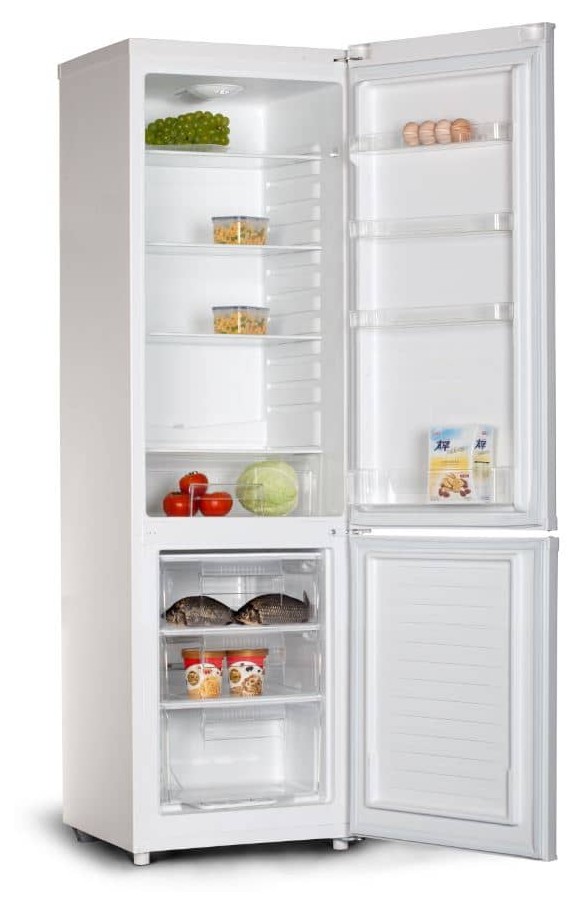 Холодильник Holberg HRB 180SW, капельная система, габариты (ШхГхВ) 54.5x54.6x181.6 см, общий объем 252 л, объем холодильной камеры 188 л, объем морозильной камеры 64 л, класс энергопотребления: A+, двухкамерный, морозильник снизу, цвет белый