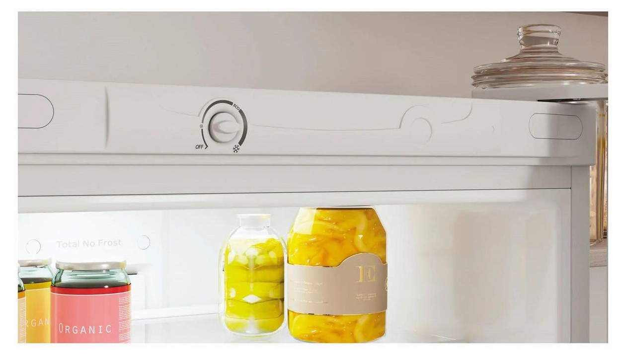 Высокая морозильная камера, в которой поместится еда для всей семьи. Технология No Frost снижает влажность в морозильной камере, предотвращая образование льда. Стеклянные полки с профильными краями гарантируют надежность и безопасность. Удобная и надежная дверная полка для хранения бутылок.