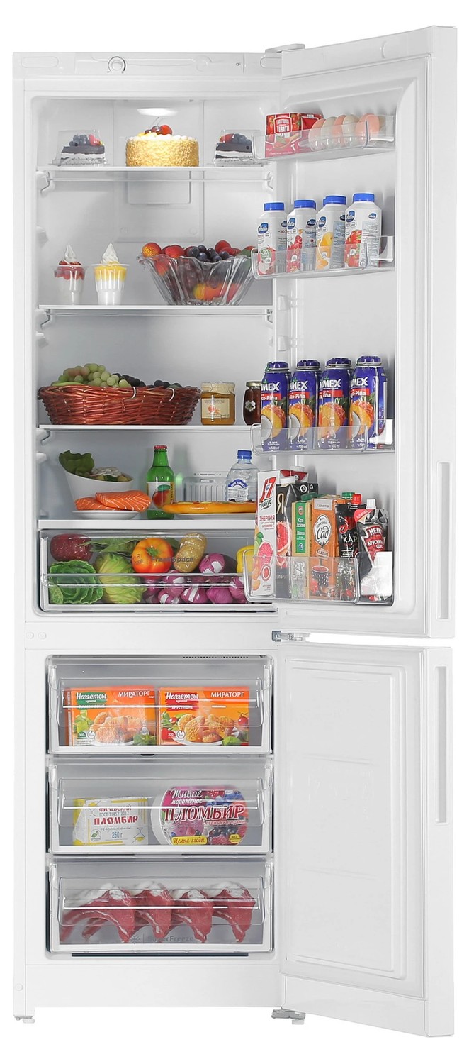 Высокая морозильная камера, в которой поместится еда для всей семьи. Технология No Frost снижает влажность в морозильной камере, предотвращая образование льда. Стеклянные полки с профильными краями гарантируют надежность и безопасность. Удобная и надежная дверная полка для хранения бутылок.