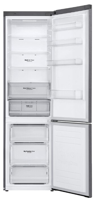 Холодильник LG GA-B 509SMHZ с линейным инверторным компрессором обеспечивает превосходное сохранение продуктов и низкое потребление электроэнергии (класс A++). Многопоточная система охлаждения создает равномерный обдув всего пространства холодильника и морозилки, что ускоряет охлаждение только что помещенных внутрь продуктов. Кроме того, в холодильнике используется технология интеллектуальной диагностики, позволяющая с помощью приложения на смартфоне выявлять и устранять небольшие неисправности.