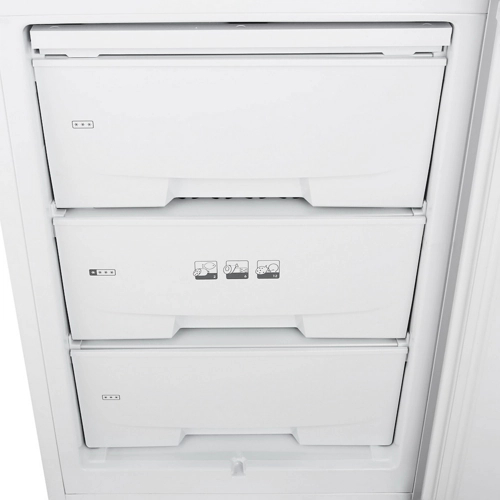 Панель управления холодильника позволяет устанавливать настройки согласно индивидуальным предпочтениям. Панель скрыта дверью холодильной камеры, благодаря чему вид аппарата остается минималистским. В комплектацию холодильной камеры также входят прозрачные полки из ударопрочного стекла, высоту которых можно регулировать, для овощей предусмотрены выдвижные контейнеры, есть емкости для масла и сыра, а также наддверные балконы для соусов и яиц. Морозильный отсек имеет три глубоких выдвижных ящика и предусматривает два режима работы — хранение продуктов и их быстрое замораживание.