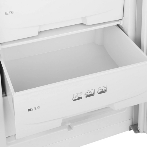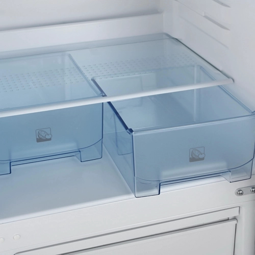 холодильник с нижним расположением морозильной камеры. Наличие двух компрессоров позволяет камерам работать вне зависимости друг от друга, что повышает производительность аппарата и надежность его эксплуатации. Холодильный отсек размораживается автоматически в соответствии с капельной системой. Более того, она помогает сохранить максимально долго естественную влажность свежих продуктов.