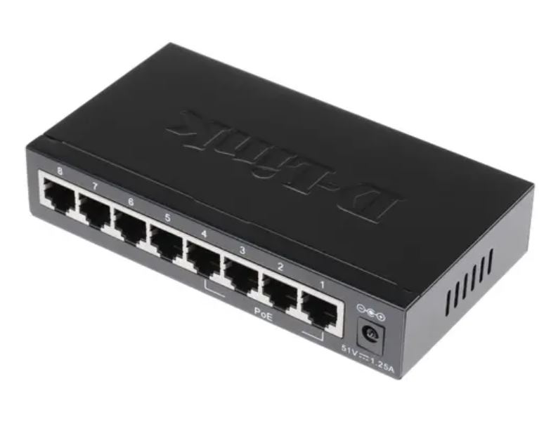 Неуправляемый коммутатор с 8 портами 10/100/1000, функцией энергосбережения и поддержкой QoS (4 порта с поддержкой PoE 802.3af/802.3at (30 Вт), PoE‑бюджет 68 Вт). Базовая скорость передачи данных 1 Гбит/с. Внутренняя пропускная способность 16 Гбит/сек.