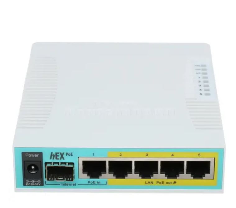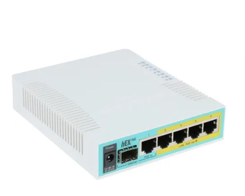 Обновление в линейке роутеров с раздачей Passive PoE питания. Mikrotik hEX PoE это новый небольшой маршрутизатор c 5-ю гигабитными портами с раздачей PoE-питания, USB-портом для подключения 3G/4G модемов или накопителей, SFP портом для соединения с оптоволокном. Порты 2-5 могут питать другие PoE-совместимые устройства с таким же вольтажем, что и на этом роутере. Максимальная мощность тока - 1 А на порт или 2 А на все порты, все Ethernet порты экранированы. Особенности модели Mikrotik hEX PoE (RB960PGS): все порты 1000 Мбс, есть USB 2.0 порт для подключения стороннего оборудования, высокомощный процессор с частотой 800 МГц, прием питания по Poe на первом порту устройства. (поддерживается стандарт PoE 802.3at), раздача Poe питания на портах со второго по пятый (2 А на все порты по протоколу Passive PoE), SFP вход для оптоволокна, предустановленная операционная система RouterOS level 4: встроенный Firewall и NAT, поддержка туннельных протоколов PPTP/PPoE/IPsec/SSTP/L2TP/IP2IP/EoIP.