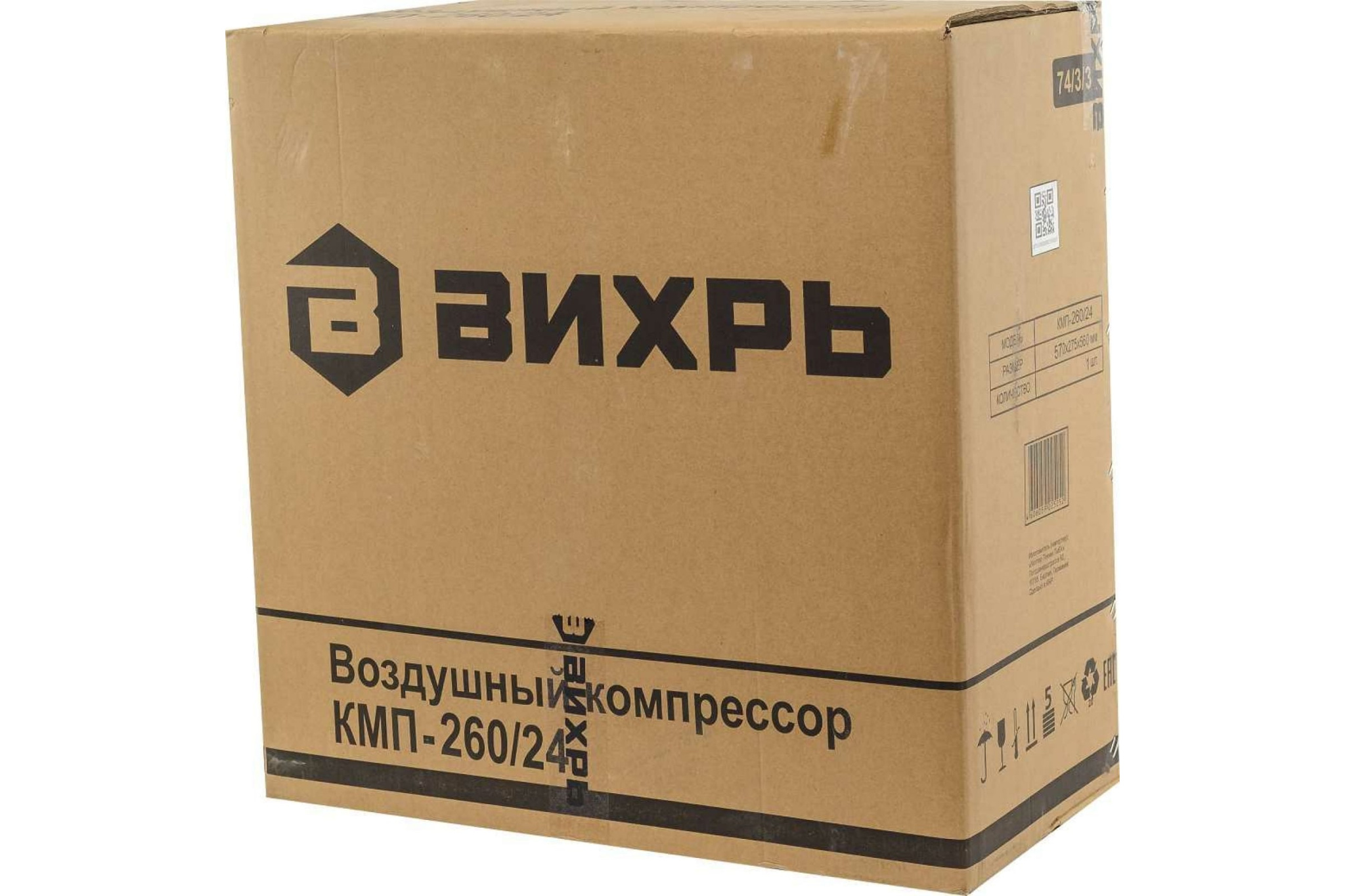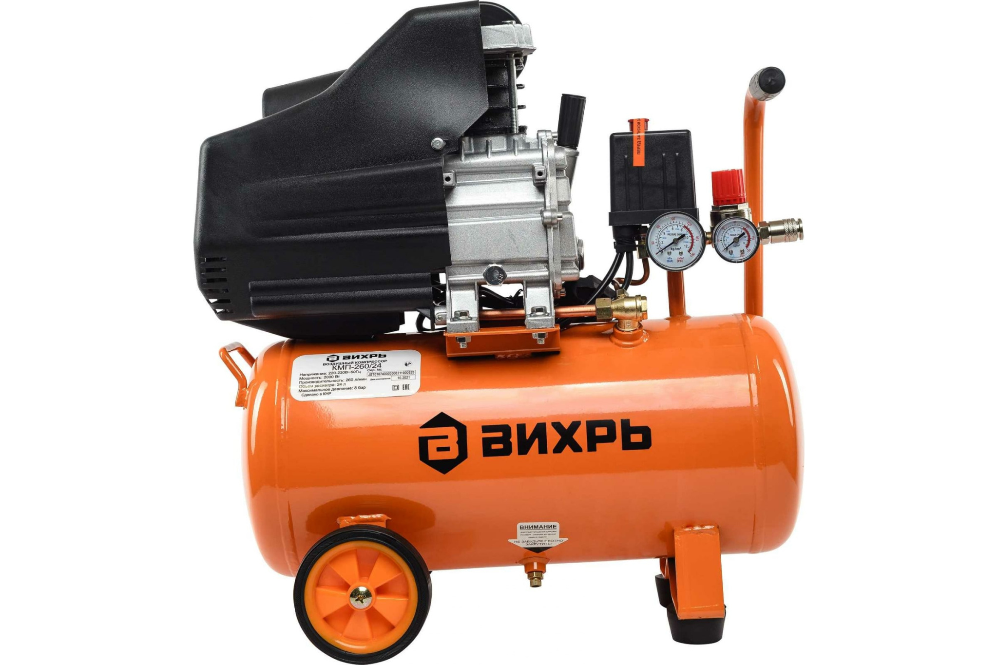Компрессор Вихрь КМП-260/24 74/3/3 обладает небольшими размерами и может использоваться для подачи сжатого воздуха, как вспомогательный источник. Мощности достаточно для краскопульта или подкачки шин автомобилей.