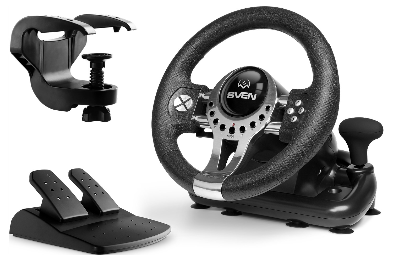Руль SVEN GC-W700 предназначен для использования с игровыми консолями PS. Он состоит из 2 блоков: рулевого и педального. Подключается устройство с использованием кабеля и интерфейса USB. Модель поворачивается на 180° и имеет виброотдачу. Это гарантирует полностью реалистичные ощущения во время «вождения». Для этого же она дополнена коробкой передач, 2 педалями и подрулевыми передачами, а также рычагом переключения «Tiptronic». Оплетка руля SVEN GC-W700 диаметром 25.4 см выполнена из резины, что препятствует его скольжению и прокручиванию.