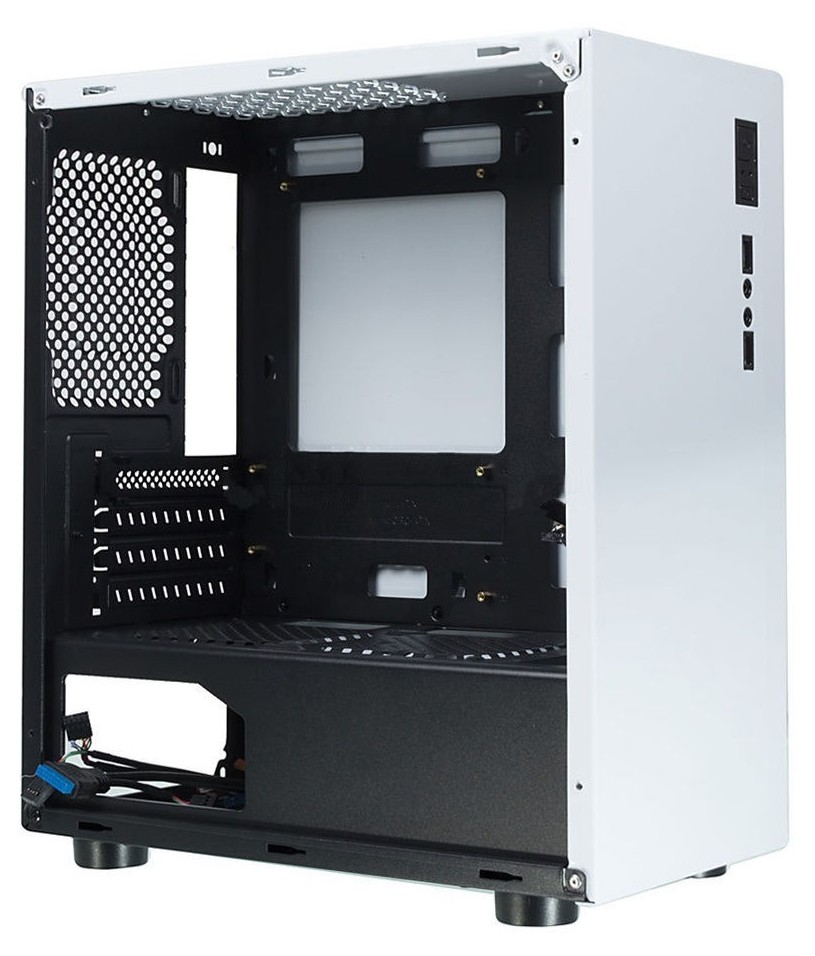 Корпус Formula GM-706W очень эффектно выглядит. Цвет модели – белый. Корпус наверняка будет выделяться на фоне другой эксплуатируемой вами техники. Модель соответствует форм-фактору Mini-Tower, обладая совместимостью с материнскими платами Micro-ATX. Вы сможете собрать по-настоящему компактный системный блок. При этом корпус подходит для создания игровой системы. В комплектацию корпуса источник питания не входит. Дополнительным преимуществом устройства является наличие прозрачной боковой панели.