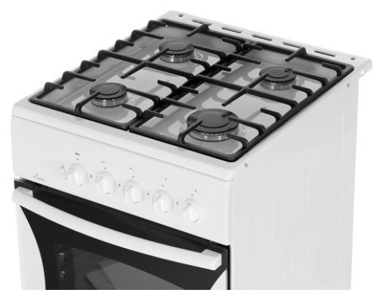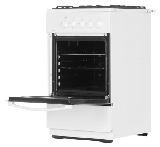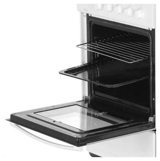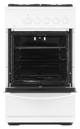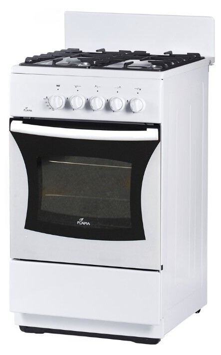 Газовая плита Flama FG 24027 W в корпусе из эмалированной стали рассчитана на приготовление сразу нескольких блюд. Для этого она имеет 4 конфорки и духовой шкаф объемом 50 л. За счет стандартных размеров (85x50x58 см) место для нее найдется на каждой кухне. Прибор управляется за счет поворотных переключателей, а за безопасность в духовке отвечает опция газ-контроля. При необходимости она перекрывает подачу топлива. Духовка с двойным стеклом очищается вручную, а под ней расположен ящик для посуды.