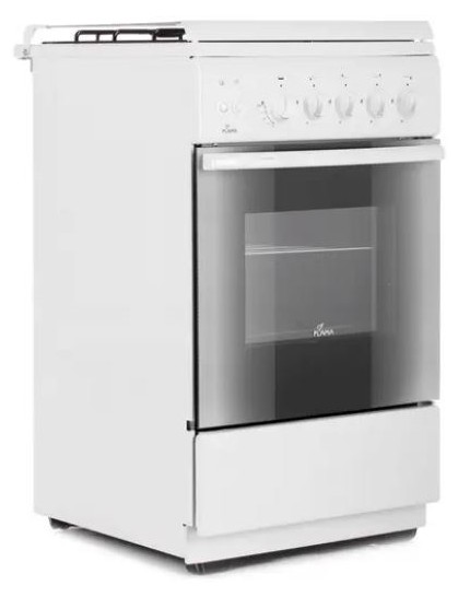 Газовая плита Flama FG 2424 W в корпусе из эмалированной стали рассчитана на приготовление сразу нескольких блюд. Для этого она имеет 4 конфорки и духовой шкаф объемом 50 л. За счет стандартных размеров (85x50x58 см) место для нее найдется на каждой кухне. Прибор управляется за счет поворотных переключателей, а за безопасность в духовке отвечает опция газ-контроля. При необходимости она перекрывает подачу топлива. Духовка с двойным стеклом очищается вручную, а под ней расположен ящик для посуды.