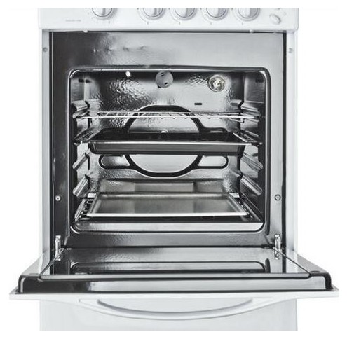 Плита газовая GEFEST 3200-06 не только позволяет быстро приготовить любое блюдо, но и помогает хранить посуду в одном месте, поскольку в самом низу модели установлен вместительный ящик. Рабочая поверхность состоит из 4 газовых горелок, которые приводятся в действие при помощи поворотных механизмов и механической кнопки, подающей искру сразу на все конфорки. Таким же образом разжигается духовой шкаф, объем которого составляет 44 литра. Сама рабочая поверхность, а также внутренние стенки духовки покрыты эмалью, которую легко очищать от пятен.