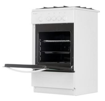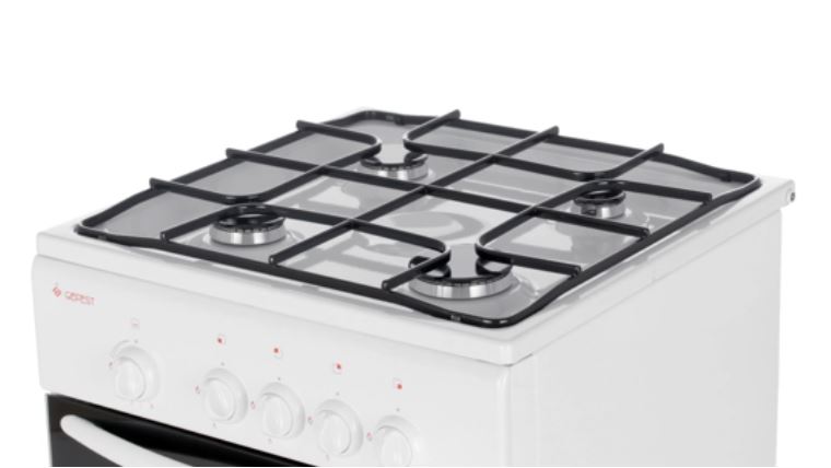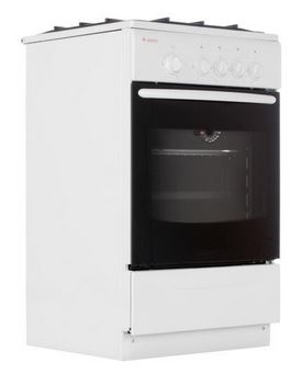 Покрытие из эмалированной стали легко моется, и вы без труда сможете поддерживать его в чистоте. Черные стальные решетки варочной поверхности прочны и долговечны, а благодаря интересному дизайнерскому решению вы сможете использовать всю варочную поверхность плиты и не бояться опрокинуть стоящую на плите кухонную утварь. Духовка в данной плите газовая, ее объем 42 литра. Для большей безопасности духовка оснащена функцией газ-контроль. Для удобства использования данная плита имеет ящик для хранения посуды.