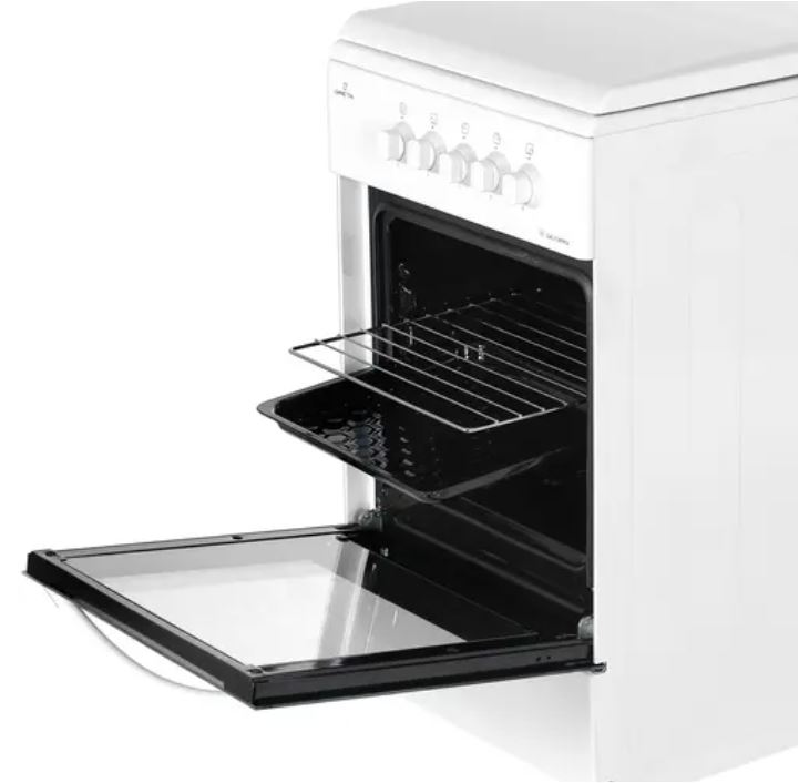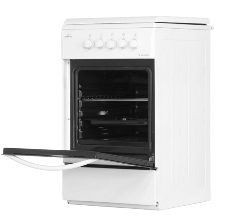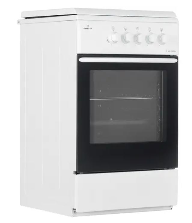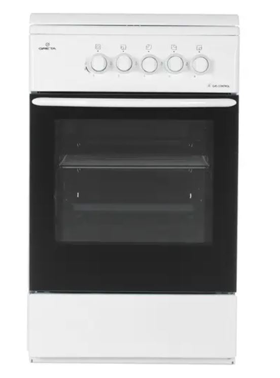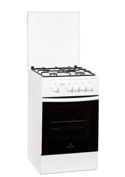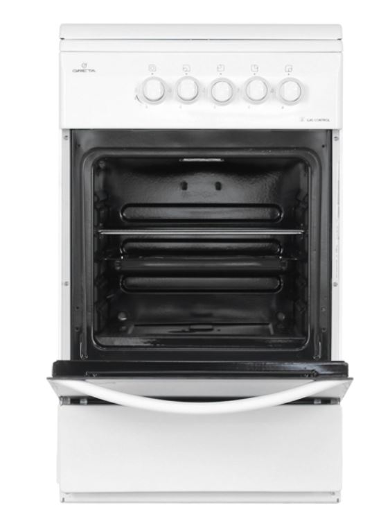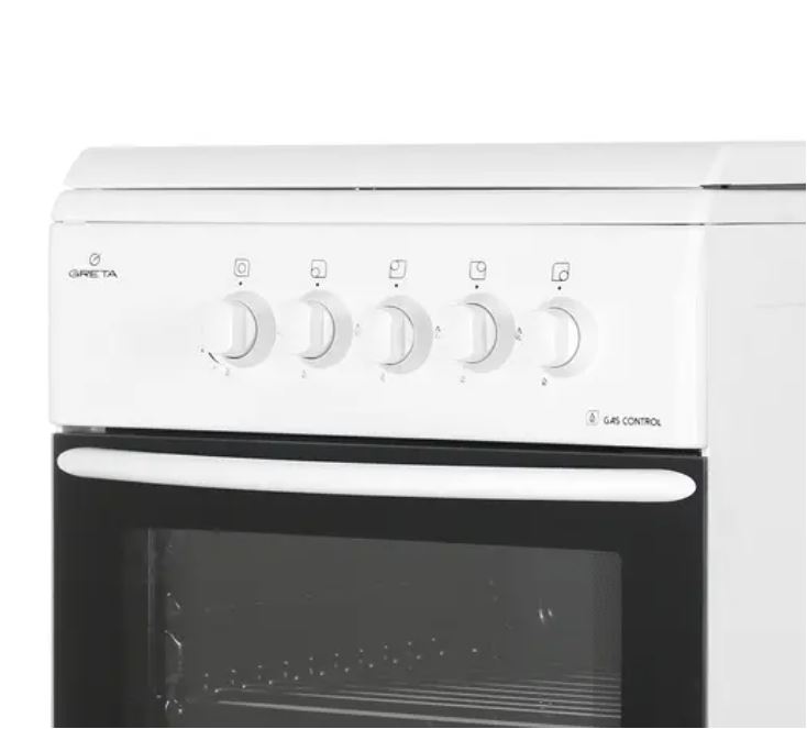 Плита GRETA GG 5070 MM 13(W) - простая, но функциональная газовая плита .Модель исполнена в белом цвете, что делает ее подходящей для расположения практически во всех кухнях. Конструкция предполагает присутствие четырех горелок, расположенных по классической схеме. Также конструкция прибора предусматривает наличие вместительного духового шкафа, объем которого составляет 54 л. Поверхность устройства выполнена из стали, которая покрыта износостойкой эмалью белого цвета. Этот материал отличается неприхотливостью и простотой в очищении. Управление горелками и духовкой осуществляется при помощи переключателей поворотного типа, находящихся во фронтальной части газовой плиты.Также плита оснащена ящиком для хранения посуды, который базируется в нижней части прибора.