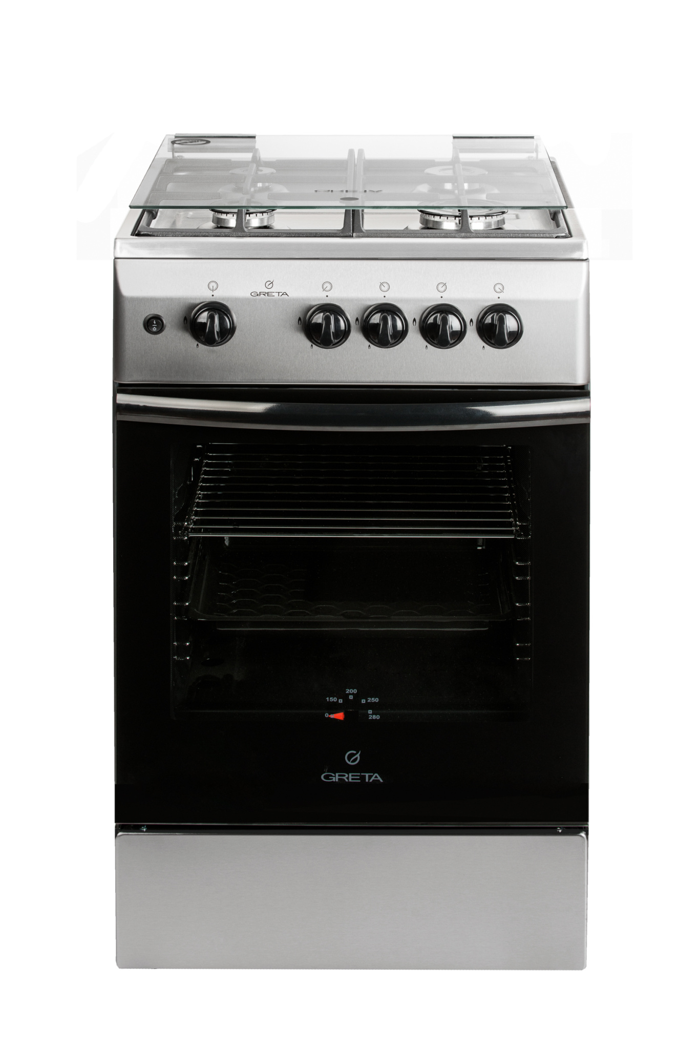 Газовая плита GRETA GG 5072 CG 38(X) обладает традиционным корпусом из эмалированной стали . Эта простая в управлении и в то же время полнофункциональная модель позволяет готовить блюда сразу на 4 конфорках и в духовке объемом 54 литра. Это делает ее подходящим решением для большой семьи. На рабочей поверхности посуда устанавливается на чугунную решетку. Управляется прибор при помощи поворотных переключателей и электроподжига. Это очень удобно и избавляет от необходимости использовать зажигалки и спички.