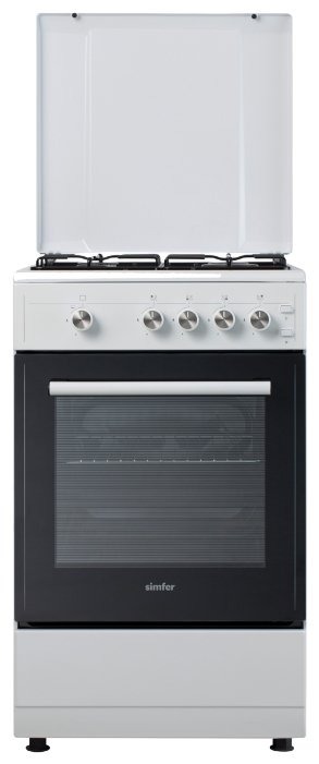 Газовая плита Simfer F55GW42017 с 4 независимыми конфорками стала обладательницей поворотных переключателей, при помощи которых осуществляется выбор желаемой мощности нагрева. На поверхности этой домашней помощницы предусмотрены незаменимые решетки, которые обеспечивают устойчивость посуды даже небольшого диаметра.