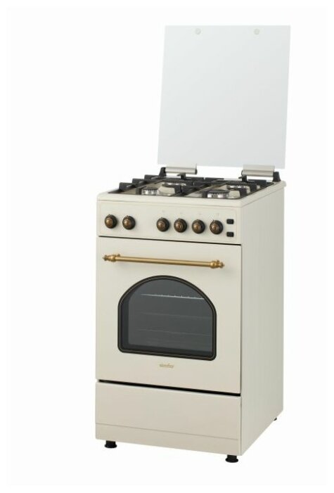 Газовая плита Simfer F56GO42017, выполненная в классическом стиле, обладает достаточно хорошей функциональностью, чтобы на ней можно было с комфортом готовить самые разнообразные блюда. Рабочую поверхность плиты, покрытую бежевой эмалью, можно закрывать стеклянной крышкой, чтобы у кухни был аккуратный внешний вид, когда вы не готовите. Четыре, разные по размеру, конфорки управляются при помощи поворотных переключателей, имеющих оригинальный и состаренный дизайн. Легко и быстро поджигать газ в конфорках (без использования спичек) позволяет кнопка электроподжига.