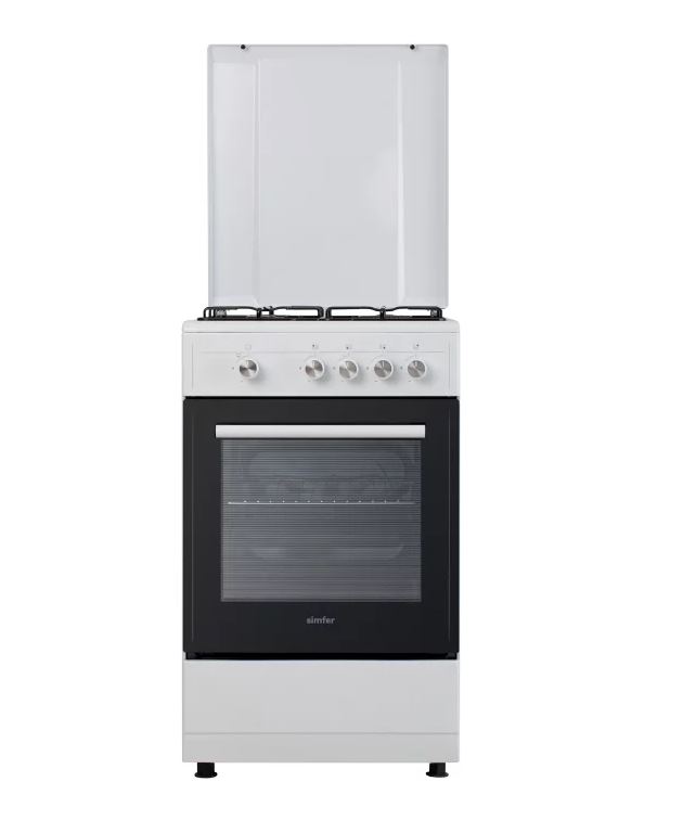 Плита газовая SIMFER F 56GW42117 полностью покрыта эмалью, что в разы облегчает процесс ее мытья. Варочная поверхность состоит из четырех конфорок, работающих на газу. Поверх панели расположена специальная стальная решетка, обладающая длительным сроком годности. Духовка газовая и имеет объем 45 литров.