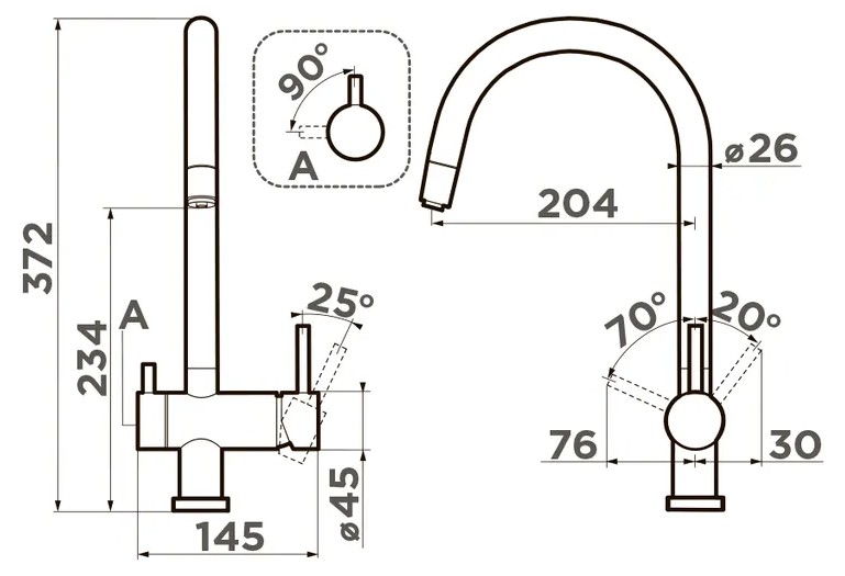 Кухонный смеситель с поворотным изливом и возможностью подключения к фильтру воды