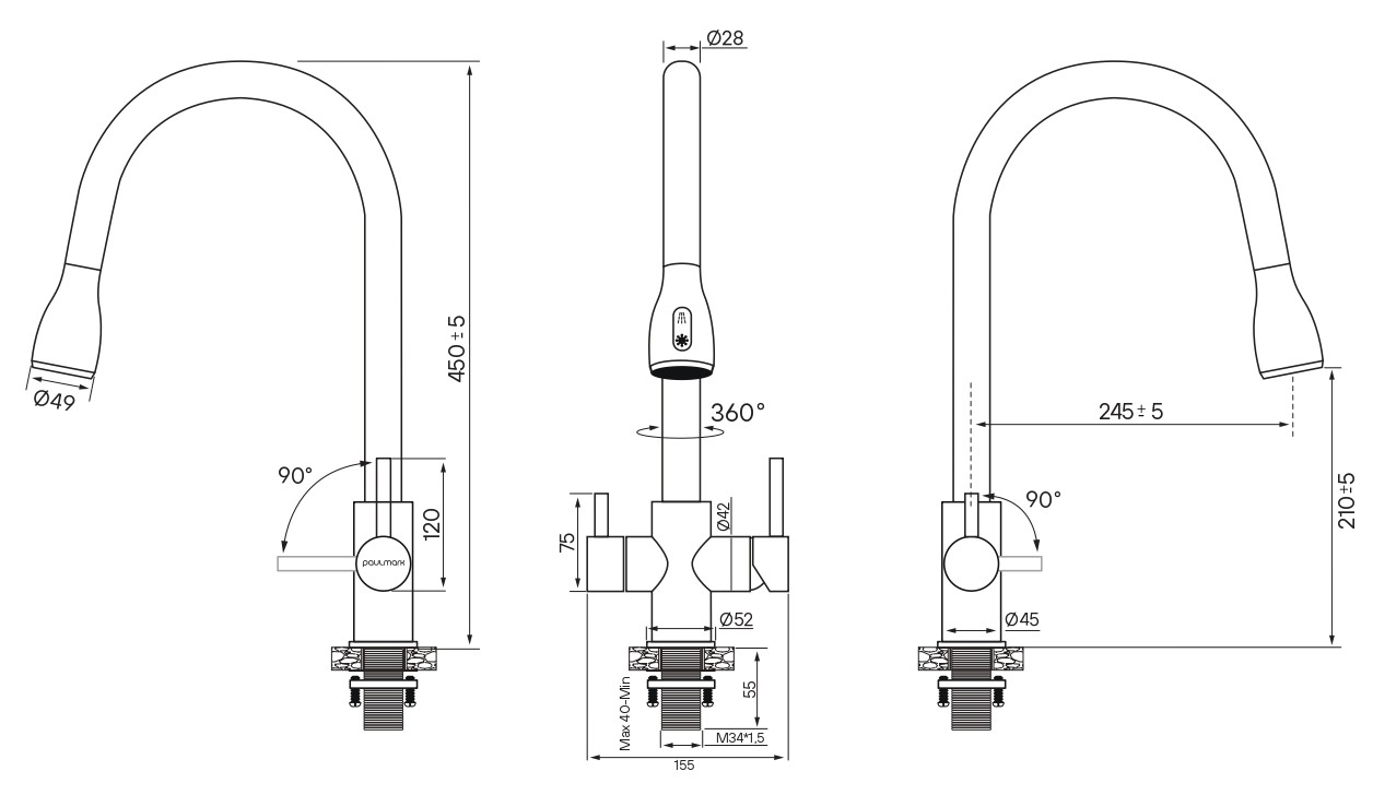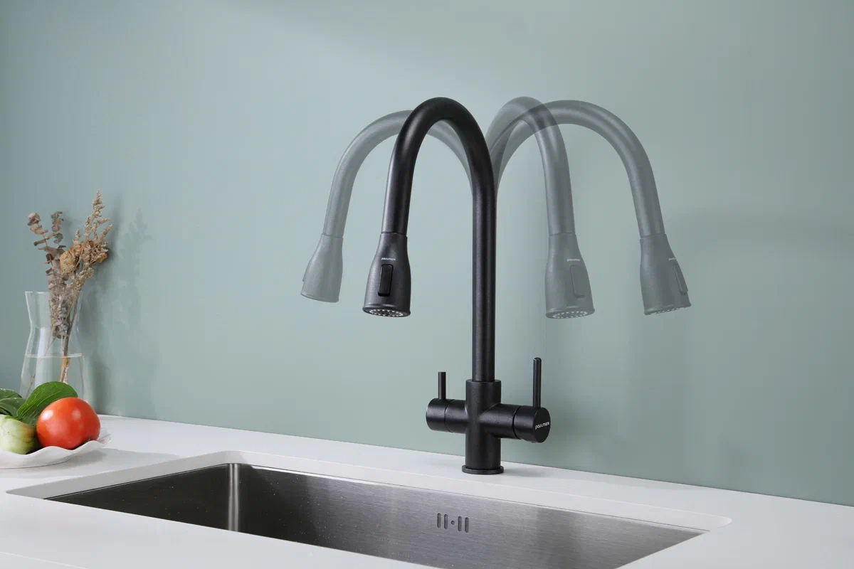 Кухонный смеситель Paulmark LANGE под фильтр для воды с выдвижной лейкой.