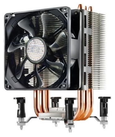 Кулер CoolerMaster Hyper TX 3 EVO RR-TX3E-22PK-R1 оснащен радиатором из алюминия. Три медные трубки регулируют теплообмен между процессором и радиатором.