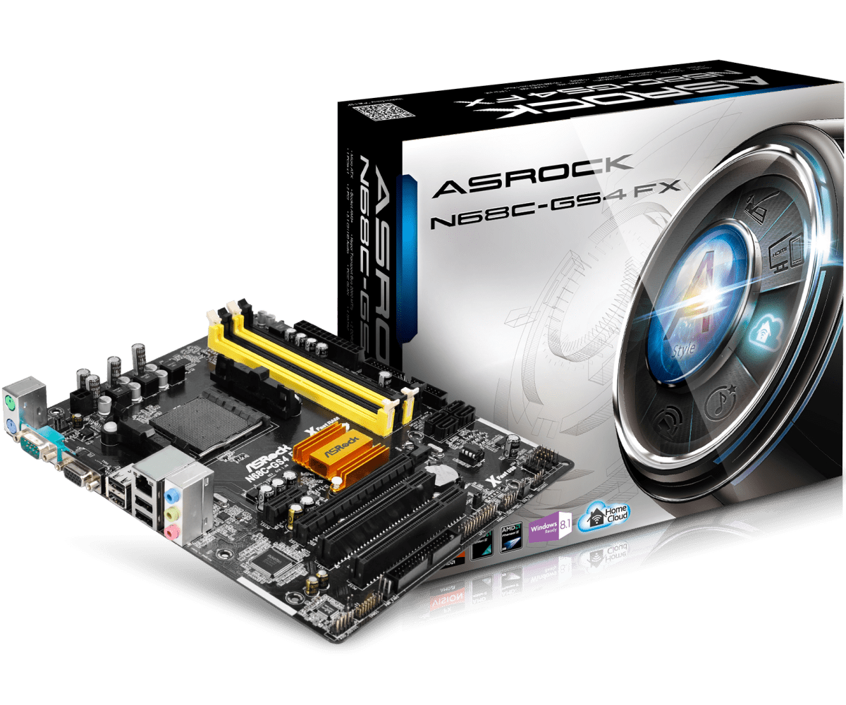 ASRock N68C-GS4 FX – материнская плата под сокет АМ3+, она поддерживает процессоры AMD c тепловыделением до 95 Вт. На плате расположены слоты для памяти DDRII и DDRIII, что позволяет гибко подходить к вопросу выбора ОЗУ. Комбинированный модуль крепления кулера на плате дает возможность лучше отводить тепло от процессора.