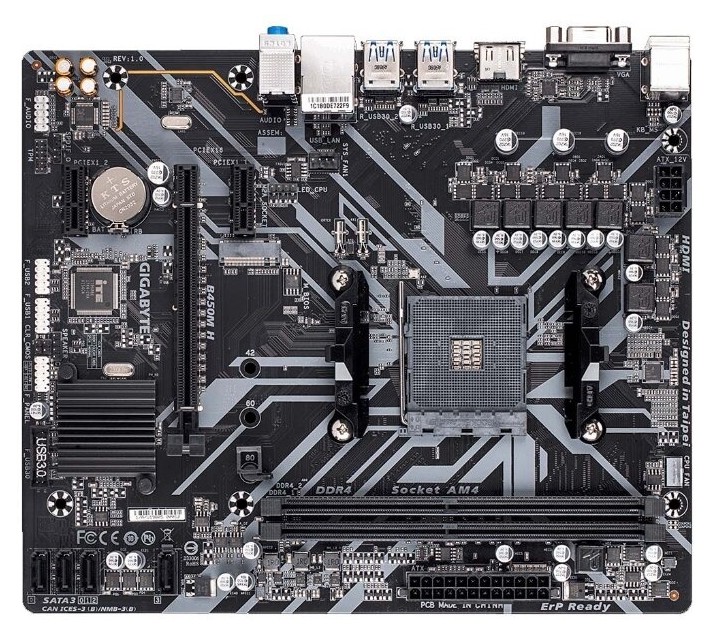Материнская плата AM4 Gigabyte B450M H AMD B450/2xDDR4/1xPCI-e16/2xPCI-e1/4xSATA6/1xM.2/4xUSB3.1/2xUSB2.0/2xPS/2/1xHDMI/1xVGA/1xGLAN/mATX
