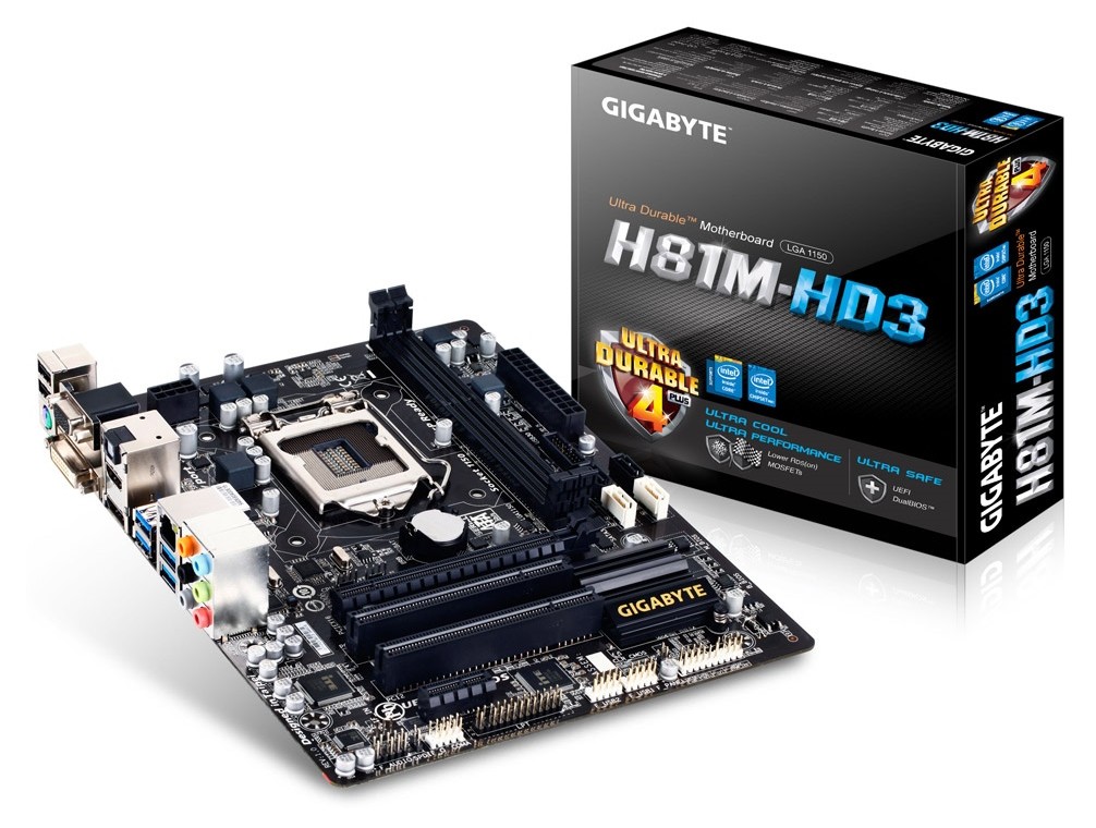 Материнская плата LGA 1150 GIGABYTE GA-H81M-HD3 H81/2xDDR3/1xPCI-e16/1xPCI-e1/1xPCI/2xSATA3/2xSATA2/4xUSB3.0/2xUSB2.0/2xPS/2/1xDVI-D/1xVGA/1xHDMI/1xDi