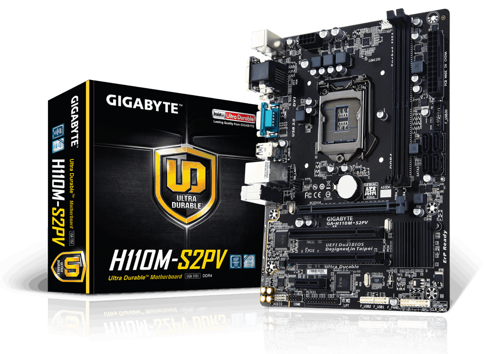 Материнская плата LGA 1151 GIGABYTE GA-H110M-S2PV H110/2xDDR4/1xPCI-e16/1xPCI-e1/4xSATA3/2xUSB3.1/4xUSB2.0/1xPS/2/1xCOM/1xVGA/1xDVI-D/1xGLAN/mATX