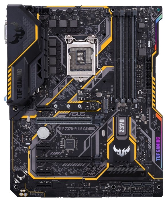 Материнская плата ASUS TUF Z370-PLUS GAMING – не только функциональный, но и стильный элемент вашей системы, благодаря наличию эффектной светодиодной подсветки. Плата базируется на широко известном чипсете Intel Z370. Модель совместима с процессорами Intel (LGA 1151-v2).