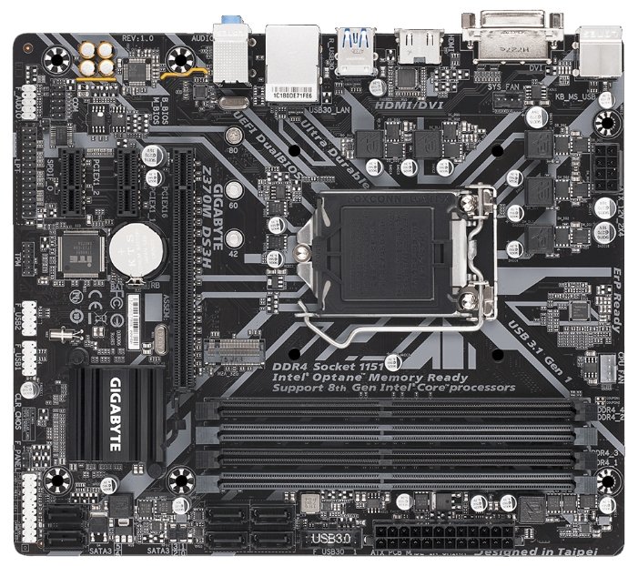 Материнская плата GIGABYTE Z370M DS3H – хороший вариант для покупки. Нужен надежный компонент для последующей сборки компьютера? Тогда стоит приобрести представленную материнскую плату.