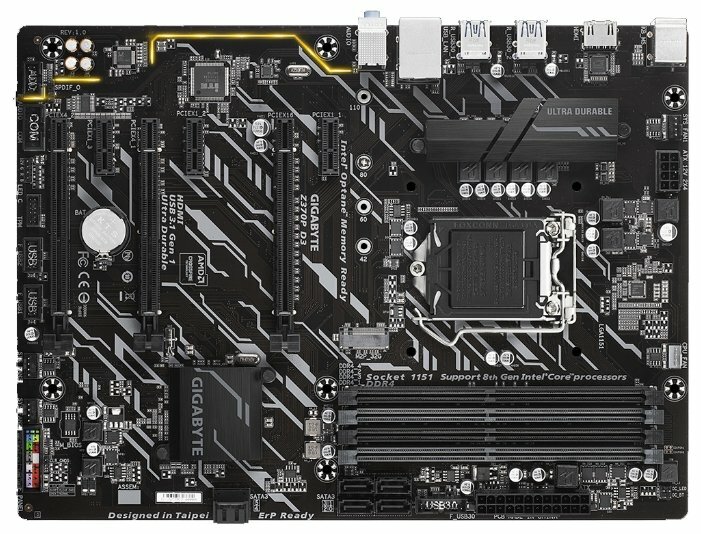 Системная плата Gigabyte Z370P D3 выпускается в формате Standard-ATX. Размеры у данной модели – 305x225 мм. В ней используется чипсет Intel Z370, поддерживается BIOS AMI.