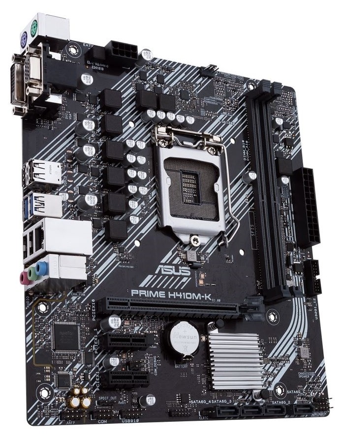 Материнская плата ASUS PRIME H410M-K принадлежит к форм-фактору Micro-ATX и обладает размерами 226x203 мм (высота и ширина соответственно). Для подключения процессора используется сокет LGA 1200. Чипсет представлен моделью Intel H410, предусматривающей BIOS AMI. Для установки модулей оперативной памяти имеются два слота, поддерживающих форм-фактор DIMM-DDR4. Максимальная частота ОЗУ достигает 2933 МГц.